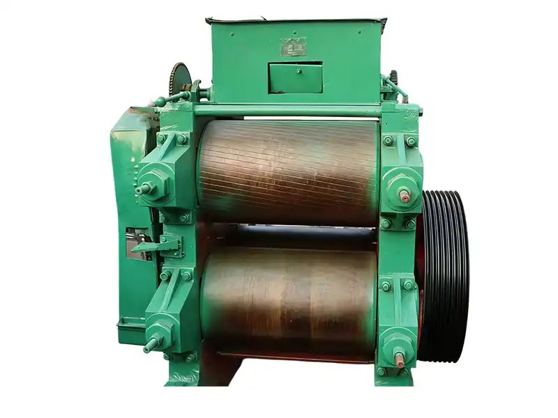 - Le principe de fonctionnement de la double paire de rouleaux : Le matériau huileux est introduit dans l'espace entre les deux paires de rouleaux qui tournent dans des directions opposées. Grâce à l'action de compression et de cisaillement des rouleaux, le matériau pétrolier granulaire est roulé en morceaux uniformes en forme de feuille (l'épaisseur des morceaux en forme de feuille peut généralement être ajustée entre 0,3 et 0,5 mm) ; La conception à double paire de rouleaux peut réaliser un « laminage secondaire de la feuille », rendant la feuille plus fine et plus uniforme, et répondant aux exigences de traitement des matériaux pétroliers à haute teneur en huile.