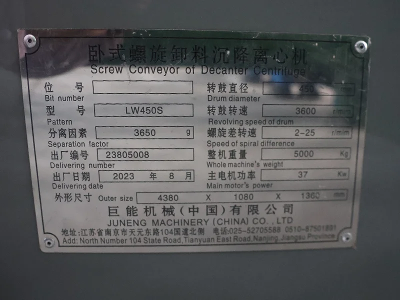 • The separation efficiency is extremely high, with a separation factor reaching 3650g (most similar models in the industry are around 3000g). Combined with a high drum rotation speed of 3600r/min, it can quickly separate fine particles (above 5μm) and low-concentration (solid content 1%-10%) materials.