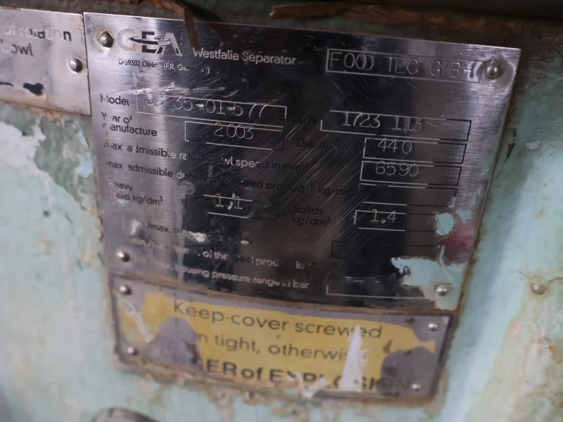 Used GEA Westfalia SeparatorSC 35-01-577